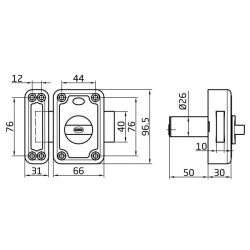 Cerradura de sobreponer Modelo 80 AMIG. Lengüeta y llave de seguridad, terminación en oro viejo.