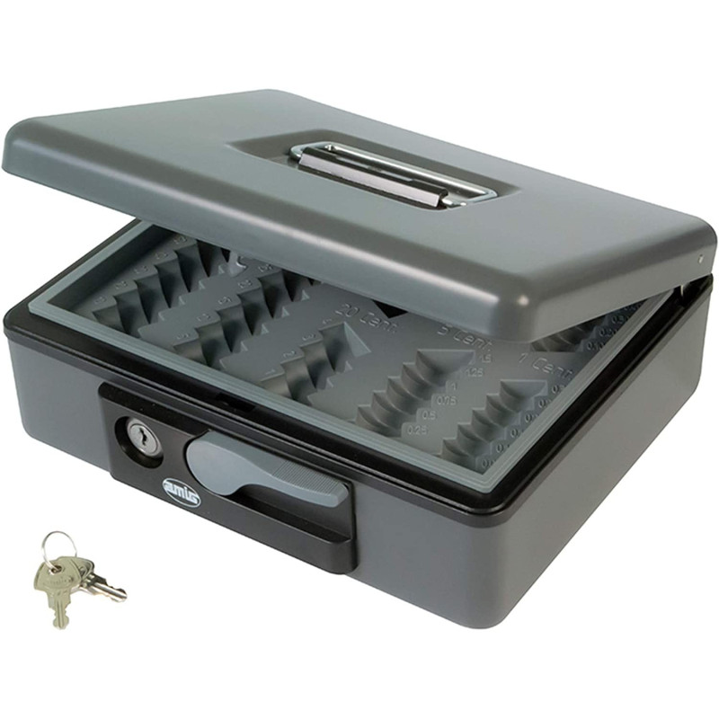 Caja de caudales con bandeja portamonedas 197 x 154 x 80mm.