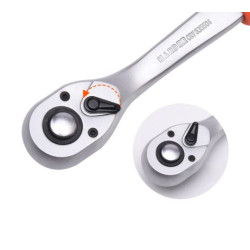 Llave carraca 1/2, de 250mm de largo, con 72 dientes y liberación rápida.