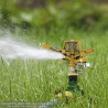 Aspersor latón para roscar, sistema de impulsión regulable, es ideal para el riego agrícola y uso profesional.