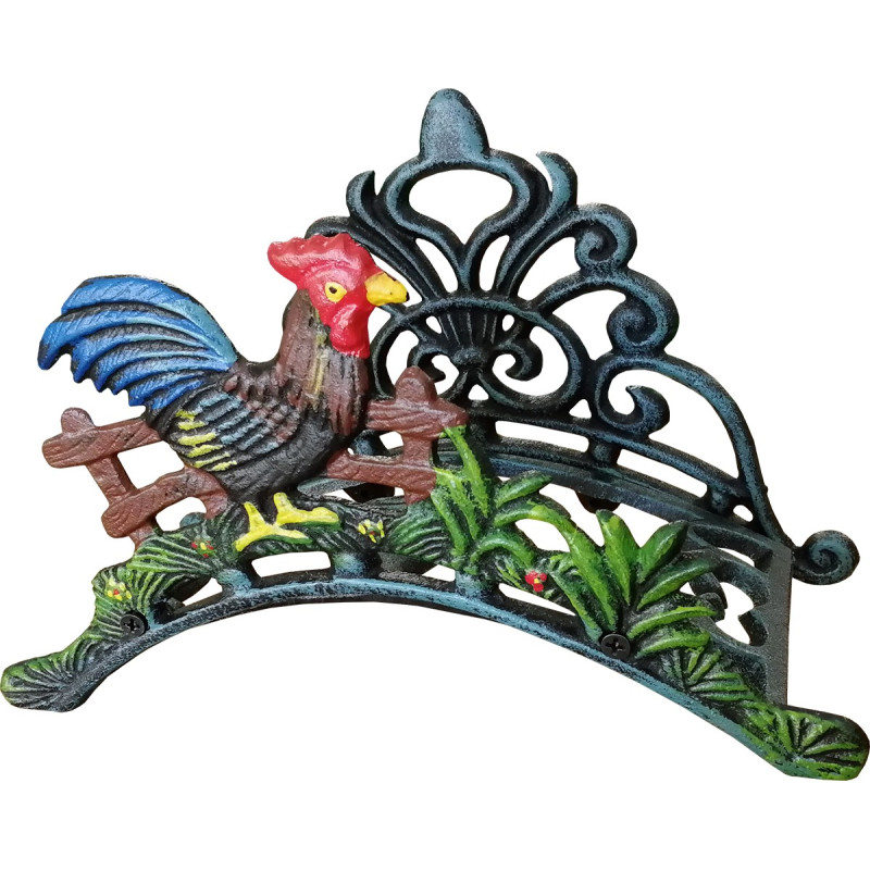 Soporte manguera jardín decorativo, gallo pequeño, hecho en fundición.