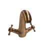 Grifo monoblock de lavabo modelo época, con terminación en bronce y montura cerámica 1/4 de vuelta.